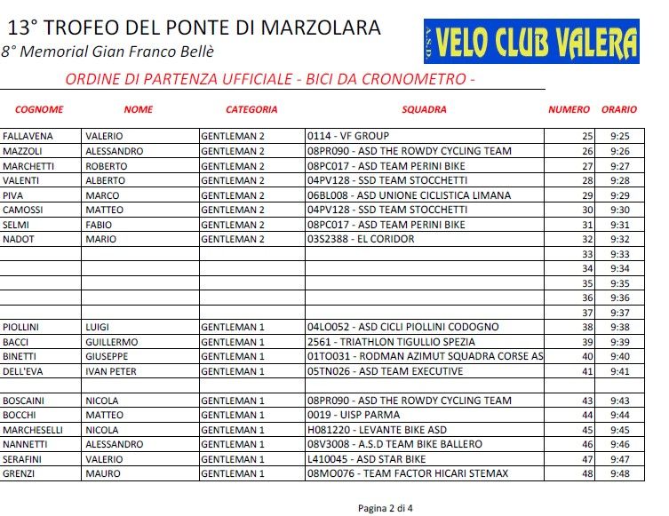 CRONOMETRO INDIVIDUALE - 13° TROFEO DEL PONTE DI MARZOLARA - 8° MEMORIAL GIAN FRANCO BELLE'